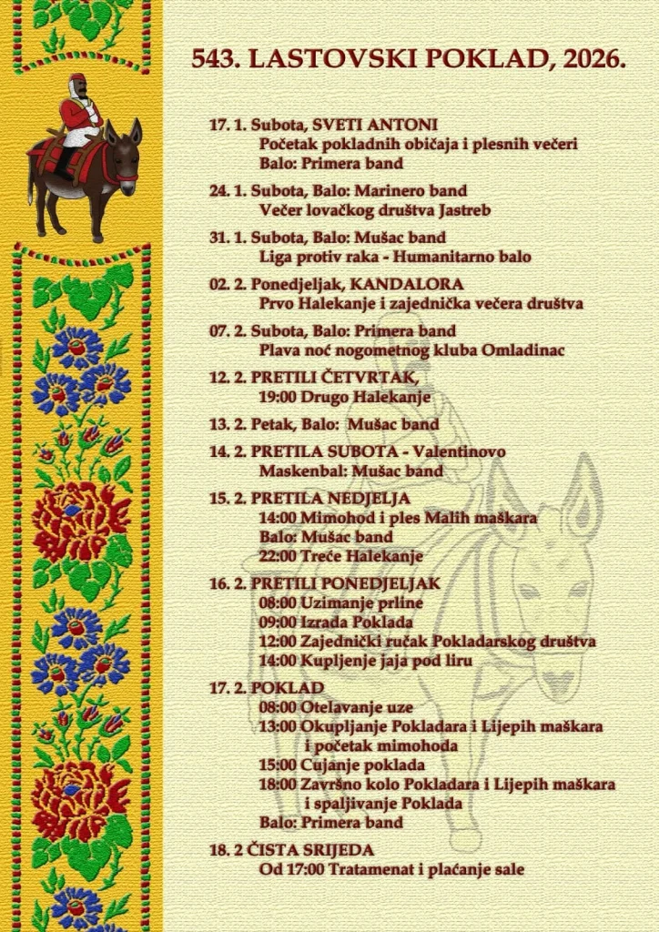 18:00 Završno kolo pokladara i Lijepih maškara i spaljivanje poklada